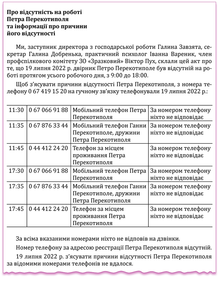 Якщо працівник не з’являється на роботі, не відповідає за номерами телефонів, зазначеними в картці П-2, а родичі не можуть пояснити, де він, — керуйтеся алгоритмом.
